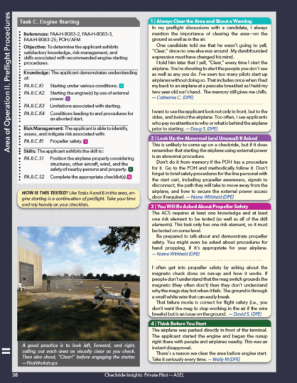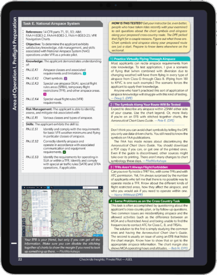 We developed a simple solution to this problem … We’ve taken the ACS and marked it up with comments and guidance from chief instructors, check airmen, and designated pilot examiners (DPEs). They tell you in plain language how each task is tested and what your examiner will really be looking for. You’ll learn the questions you’re likely to be asked, how to avoid common mistakes, and how to make a great impression. You’ll see where and how checkrides typically fall apart, and what the best applicants do to pass.
