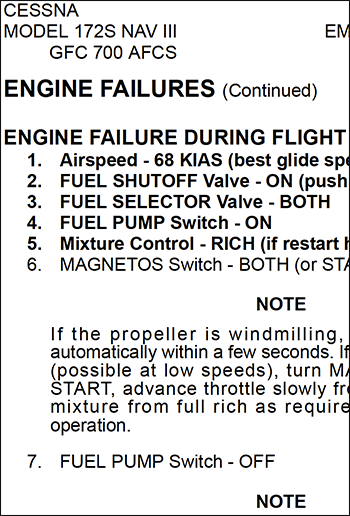 "My Cessna 172S emergency checklist has some items in bold and others in a normal font. What’s the difference?" —Janet M.