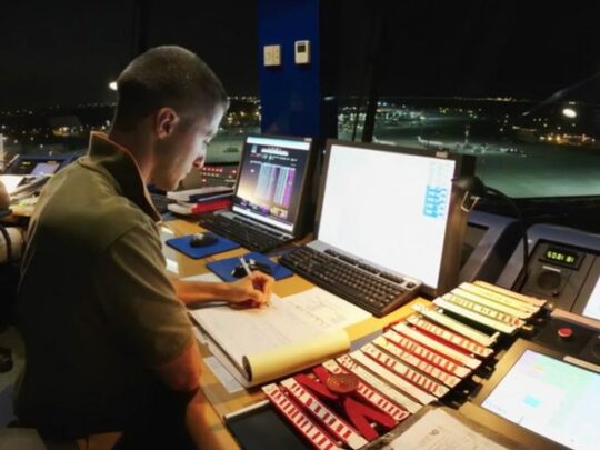 Two degrees is about the width of one finger held out at arm’s length. So if we’re flying at 10,000 feet or lower, we need to hold our arm out in front of us at arm’s length and put the bottom of our finger on the horizon. The traffic is somewhere behind that finger—which is a really small slice of the sky just above the horizon. Put the finger down now and look for traffic right there.