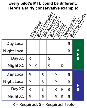 Obviously, you can make your own MTL based on your aircraft and the type of trips you fly. But creating an MTL and using it consistently is a good first step in aeronautical decision making.”